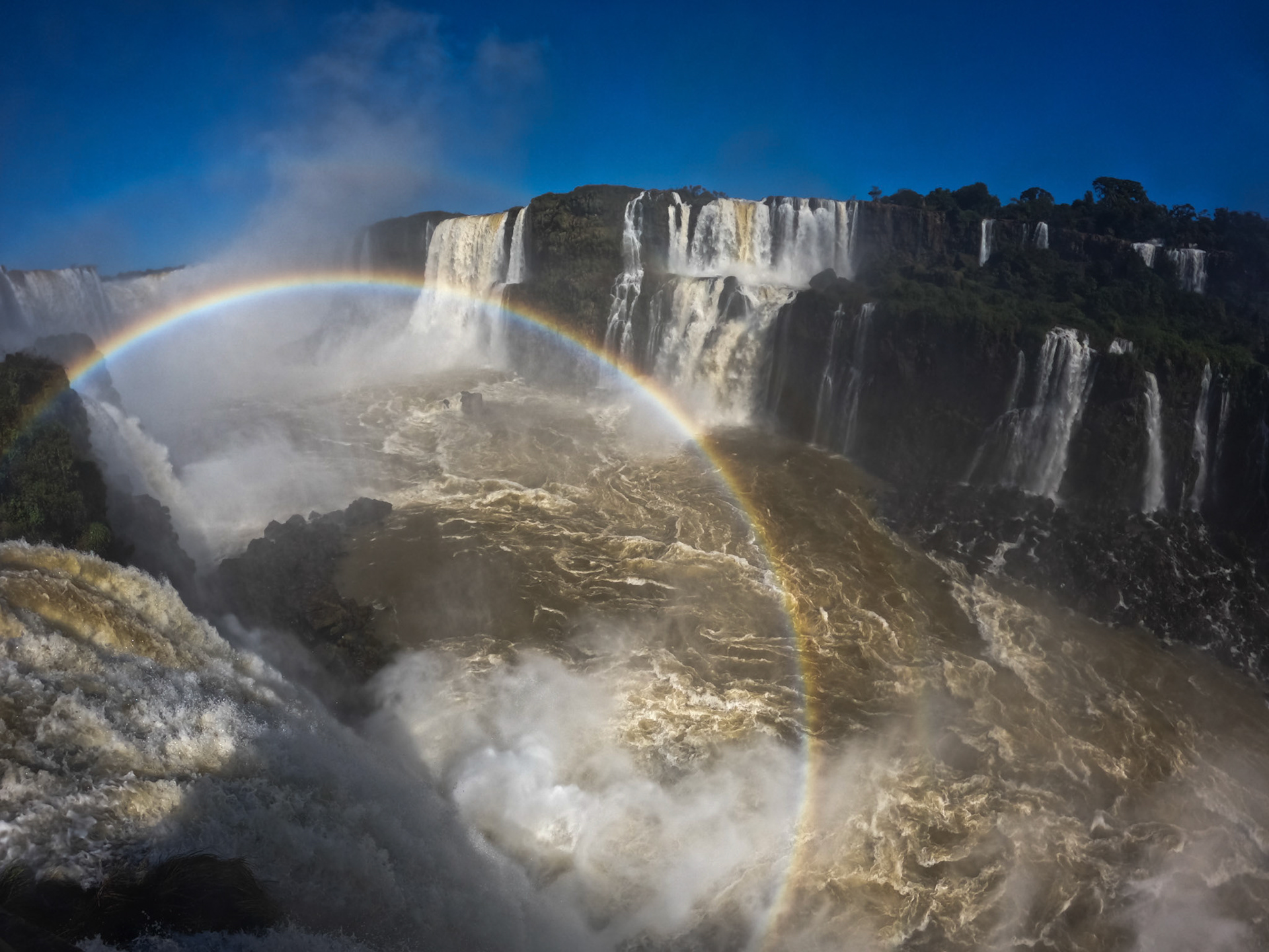 Lose yourself in the thunderous symphony of nature as you capture the raw power of Iguazu Falls.